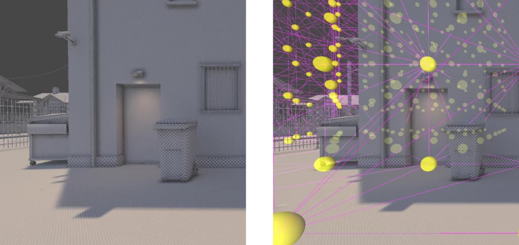 Illustration von gebackenen Lichtern (Lightmaps) und Light Probes